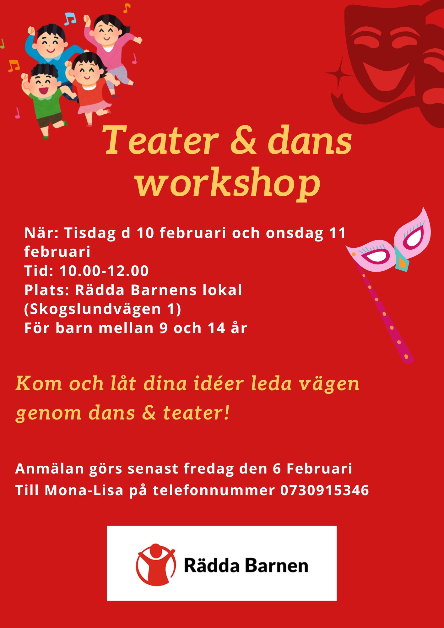 På tisdagen den 10 februari och onsdagen 11 februari klockan 10 till 12 är alla barn mellan 9 och 14 år välkomna på teater och dans workshop!